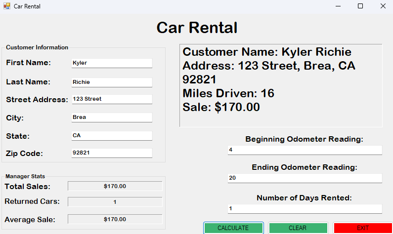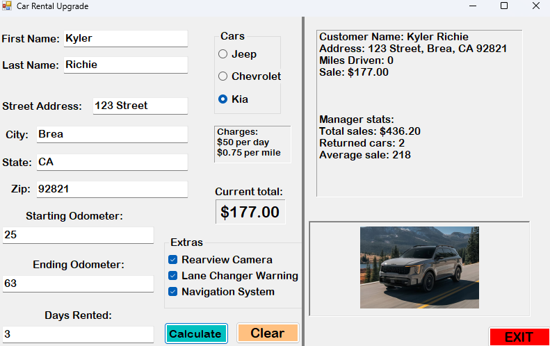 Car Rental UpgradeDate 12/11/25 Upgraded features of car rental.