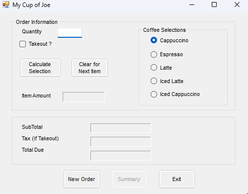 Coffee ShopDate 12/11/25 In this program you calculate the cost of coffee orders.