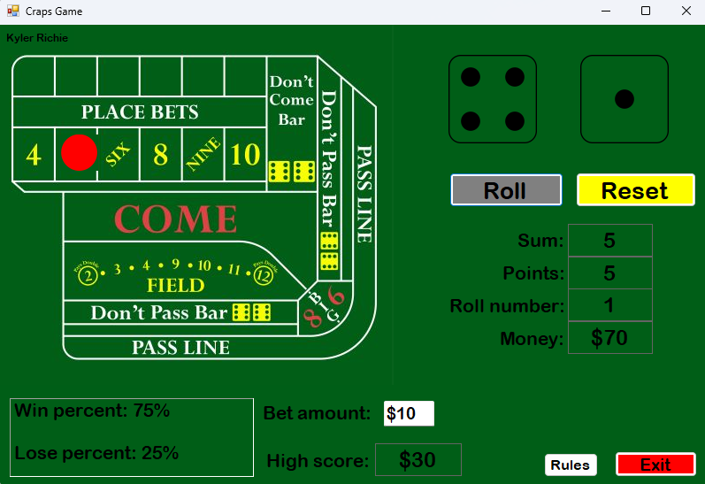 Craps GameDate 12/11/25 In this program you play Craps.
