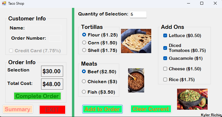 Taco ShopDate 12/11/25 In this program you calculate the cost of taco orders.